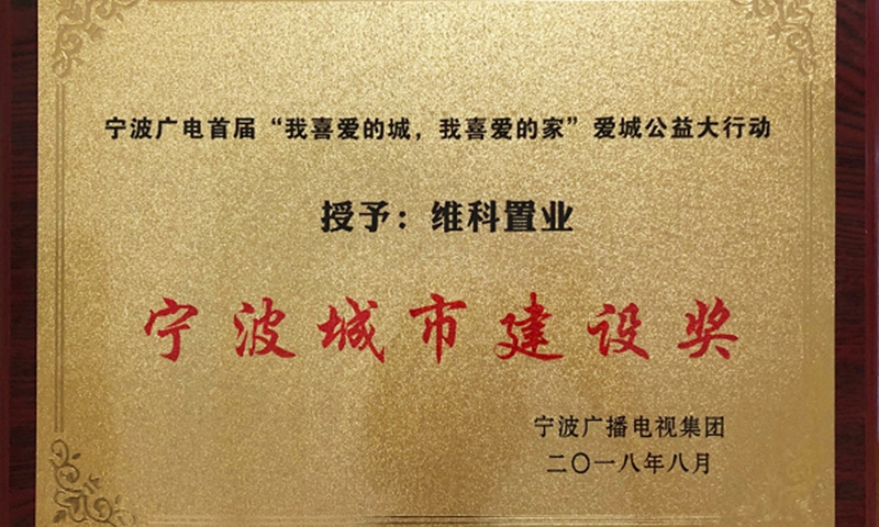維科置業(yè)榮獲“2018寧波城市建設(shè)獎(jiǎng)”