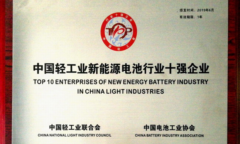 維科技術(shù)は中國(guó)軽工業(yè)新エネルギー電池業(yè)界トップ10企業(yè)に入選