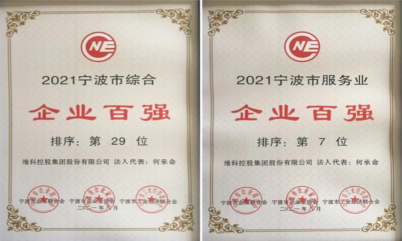 VEKEN集団は2021寧波市総合百?gòu)?qiáng)企業(yè)、サービス業(yè)百?gòu)?qiáng)企業(yè)の栄譽(yù)を獲得